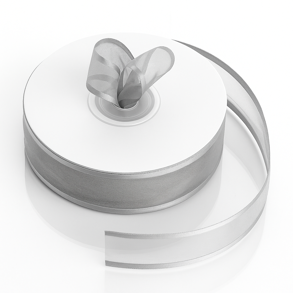satin-edged organza ribbon combines a sheer organza center with smooth satin borders. The lightweight, semi-transparent fabric offers a delicate appearance, while the satin edges add structure and a polished finish. Suitable for gift wrapping, floral arrangements, decorations, and craft projects.
