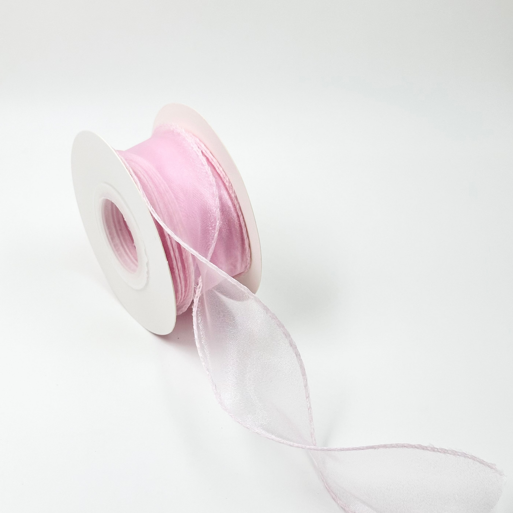 Sheer organza ribbon featuring distinctive fishtail edging for a decorative finish. The lightweight and translucent texture makes it suitable for enhancing gift packaging, floral arrangements, event décor, and craft projects.
